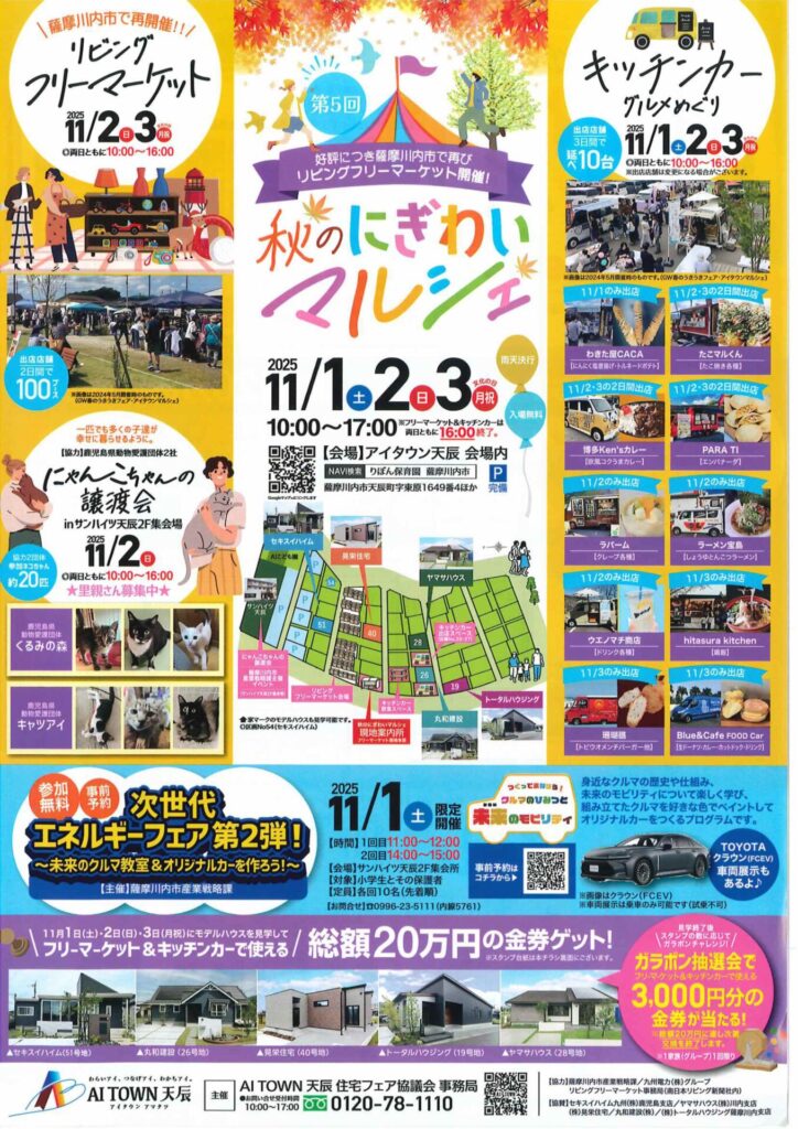 薩摩川内市天辰町 AITOWN天辰にて、「秋のにぎわいマルシェ」を開催いたします。